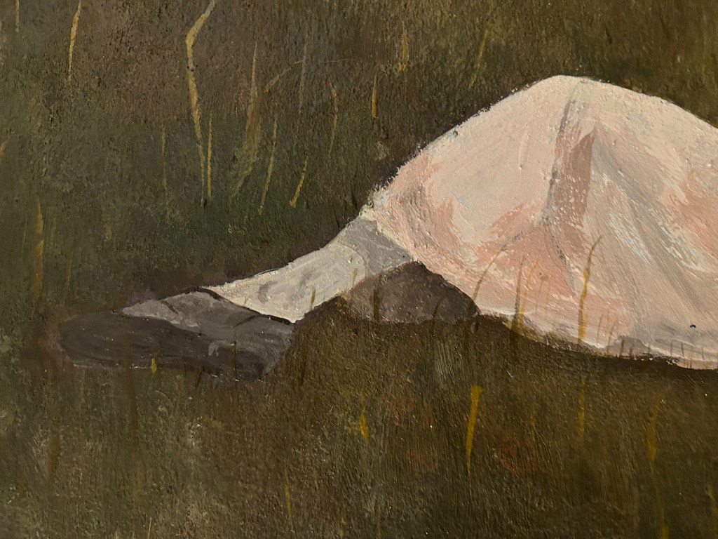 Compared to the confidence I feel in my art, there is a constant struggle with the work space; with the haunting feeling I’m doing nothing right, I have no skills, and I’m not contributing. I found that as I spoke with other creatives in said work spaces this feeling of insecurity was common. To explore this feeling of being unstable my disabilty lent me in a work place I decided to explore a space I found unhabitable as an artist, yet one i longed to belong to. Most of my work being digital and experimental, the focus on the art object is something I’ve often not been able to engage with. Painting is also emblematic of my inexperience and fear of failure. I had always considered painting as something I was not only inexperienced in, but actively bad at. Just as I longed to feel capable in these work spaces, I was often jealous of the legitimacy and high visibility these more traditional art objects lent to artists.